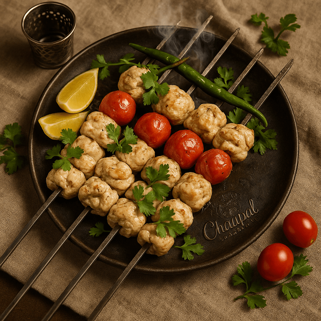 Pata Tikka is a unique BBQ treat featuring tender meat pieces wrapped in a thin layer of goat fat, grilled until crispy outside and juicy inside, bursting with bold, smoky flavor.