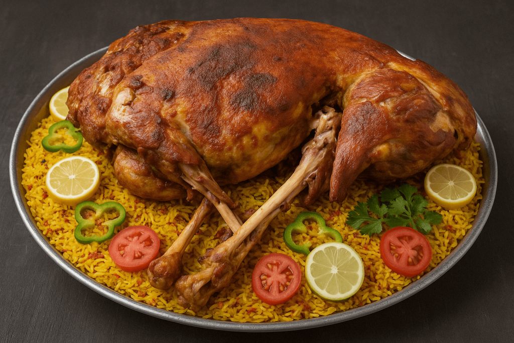 Step into a feast of grandeur with our Whole Lamb with Rice—a majestic dish that celebrates tradition, generosity, and unforgettable flavor. A whole lamb is expertly marinated with aromatic spices, then slow-roasted to tender perfection and served atop a bed of fragrant basmati rice, enriched with dry fruits, herbs, and a delicate blend of seasonings.